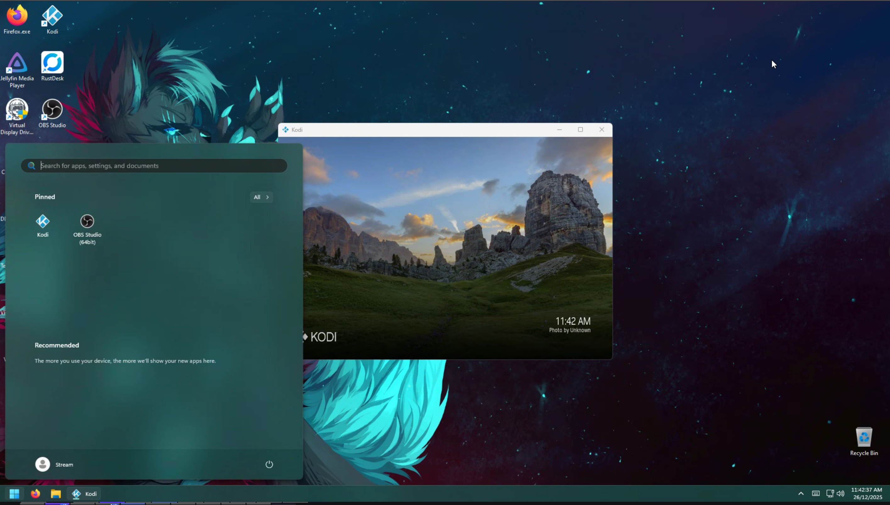 I don't stream the content from the same system im playing VRC on, I run i use a VM (virtual machine) with OBS, Firefox, Kodi installed on it.
