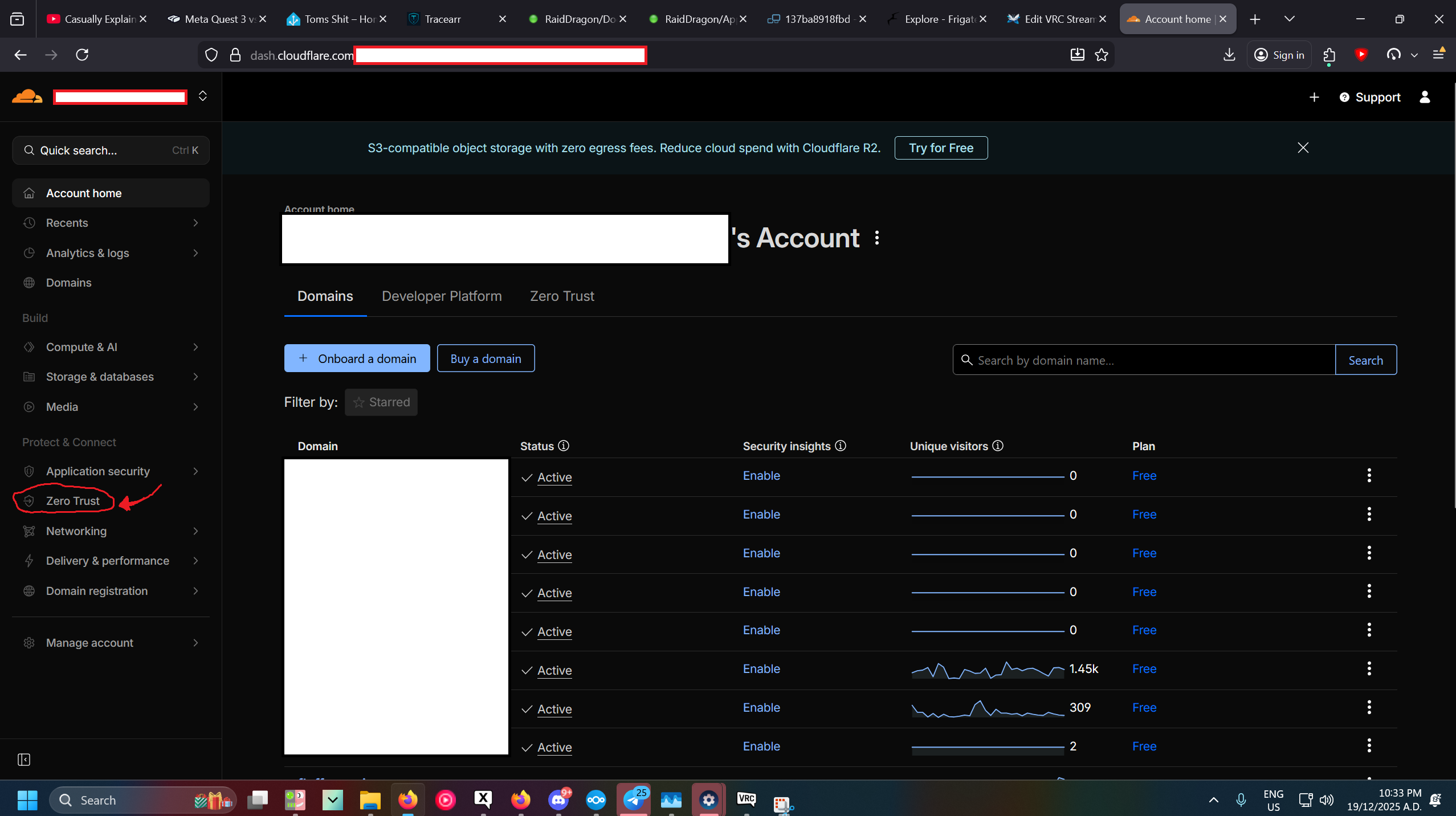 Now that this works we can make it so everyone can see our stream because at the only you can access it, As i said in the requirements, you might not already own a domain name, if that's the case you will need to buy one, you can realistically get one from anyone, like Namecheap, VetraIP, Go daddy. Or many other options. In this case, I use CloudFlare. This also will work more cleanly with other CloudFlare services we will end up using as well, But is not a requirement, you can also get away with directly using your public ipv4 and or ipv6 address and using port forwarding if applicable. But from my experience this will not work on quest, And also just does not look as nice, And for some this might not be a option if your under a ISP cgnat (or you just plan don't have access to change firewall settings). The tunnel we setup later "bypasses" this issue.