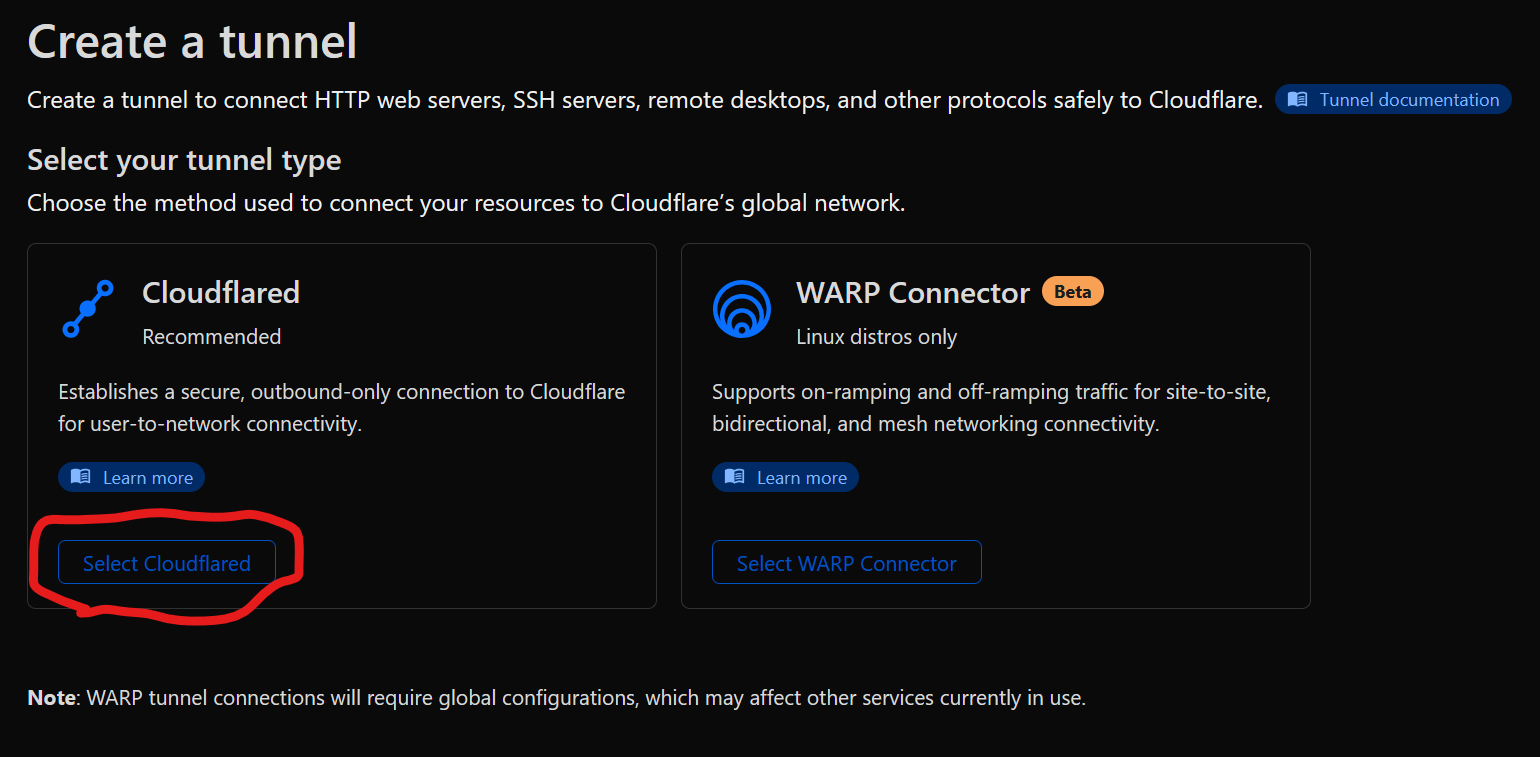 Next you need to install the connector somewhere were it can reach our server, This is most likely docker. Cloud-flare gives you instructions on how to do it on what ever systems you use though.